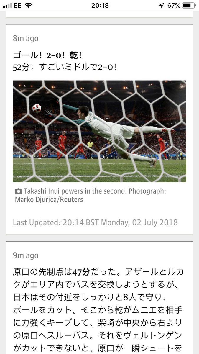 So, the Guardian app has decided to show me the commentary in Japanese…