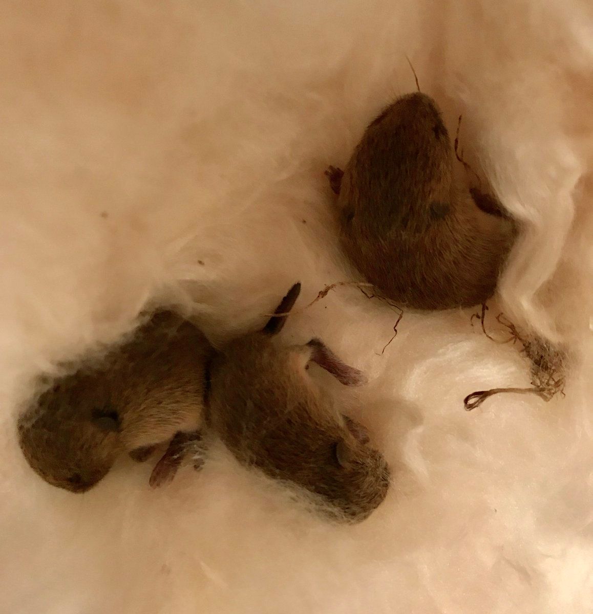 Just as Gerald the wood mouse is nearly ready for release back to the wild, we have acquired three new house-guests… (They are baby field voles, in case you were wondering)