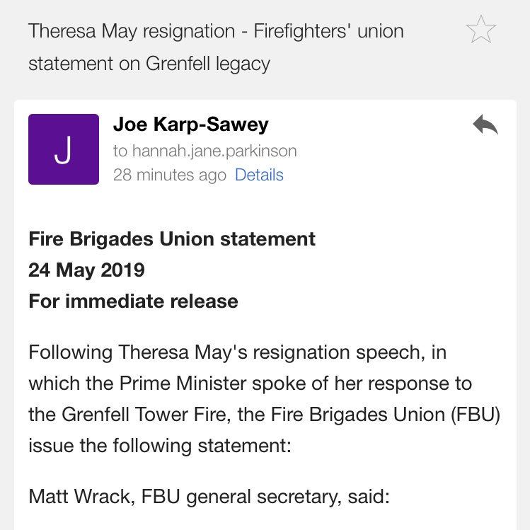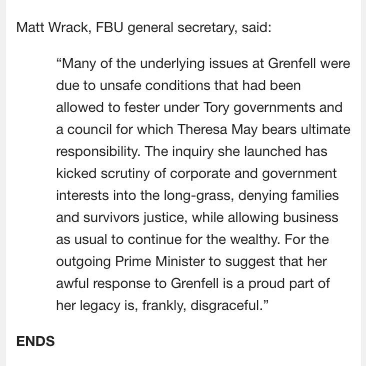 : statement from the Fire Brigades Union on Theresa May and Grenfell. No further comment necessary.