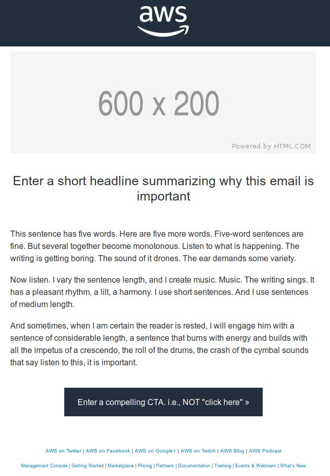 : AWS accidentally sent me their email newsletter template, and it's kinda great. cc