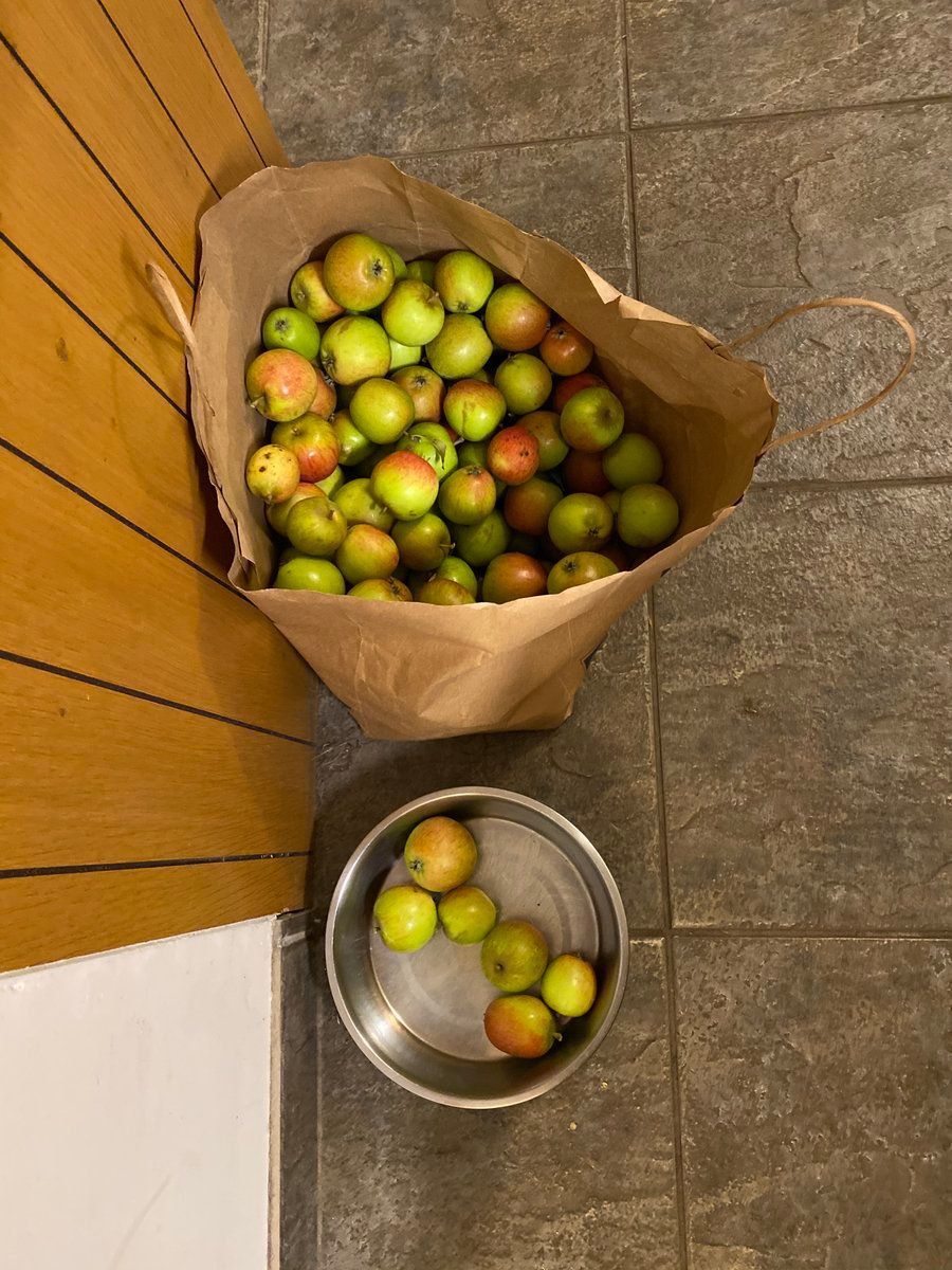 1. We’ve got a whole load of small apples on the floor that the dogs are realising they’re allowed to help themselves from… Feels great to give them agency!