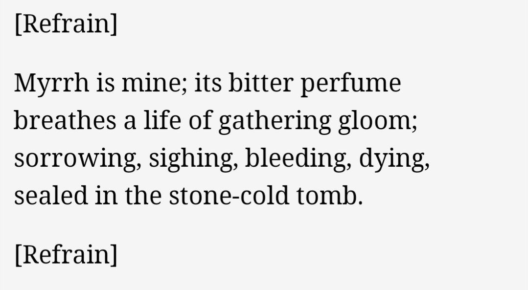 : I always forget that We Three Kings goes full-on goth in verse four.